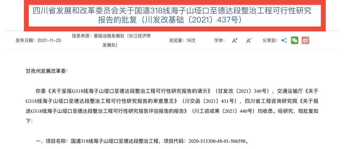 近日,国道318两个改扩建工程获四川省发展改革委批复,项目分别位于甘孜州、雅安市境内。