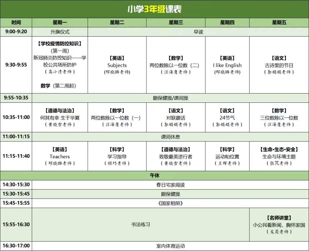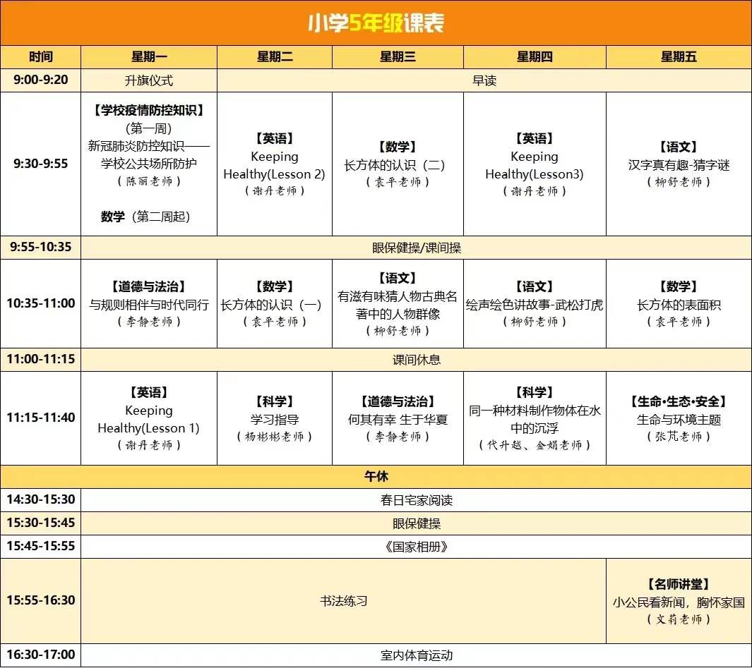 1.小学课表供我省疫情防控延期开学期间小学1-6年级使用。学校疫情防控知识、学科教学、国家相册、名师讲堂等相关课程资源从3月9日开始通过有线电视、IPTV、网络平台进行推送。