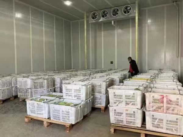 分拣交易中心占地面积十余亩,工人们将收购回来的芒果进行分选、包装,通过平台进行销售。“目前,冷库存了几万斤芒果,是前期收购的熟果,错峰销售价格更理想。”李洪林介绍,分拣交易中心里的四个冷库总库存达到120万斤,“以目前的气温,芒果摘下来只能存放两三天。如果放到冷库里面,优质的芒果可以存放20天左右,放到气调库可以存放一至两个月。”