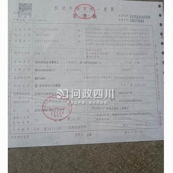 2021年10月9日,网友从广东省广州市购买了一辆电动车,由于是广州所开具的发票,与小金县保险机构“购买交强险需有小金本地发票”的要求不符,因此无法购买交强险,进而影响其为电动车上牌照和上路行驶,呼吁有关部门帮助协调解决。