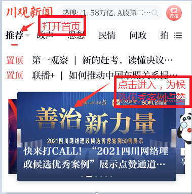 此次点赞在川观新闻客户端内和四川在线同时进行