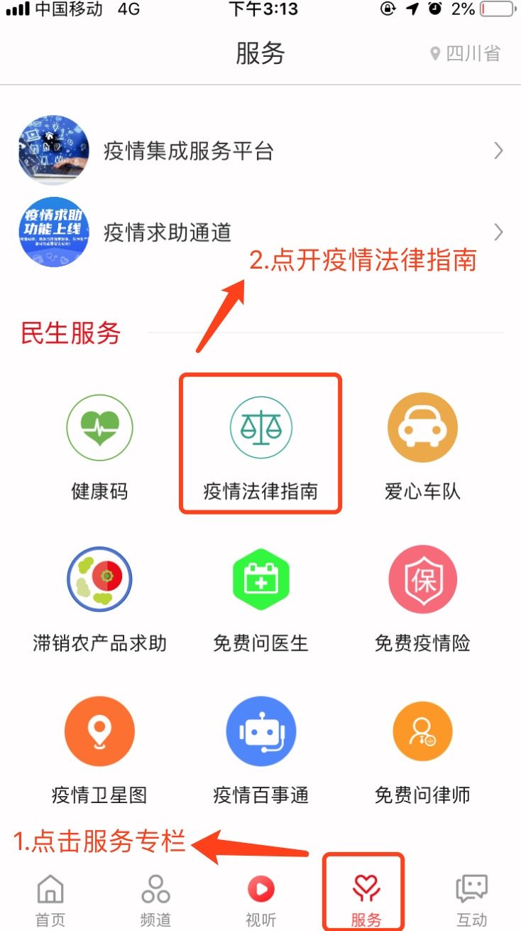 下载川报观察客户端——点击进入“服务”——点击“民生服务-疫情法律指南”即可。