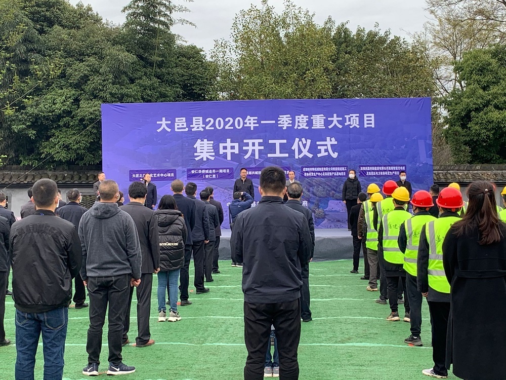 3月10日,成都市大邑县2020年一季度重大项目集中开工仪式在大邑县安仁坝子华侨城大匠之门项目现场举行。一季度,大邑县开工5个重大项目,总投资48.5亿元,年度投资8.9亿元,涵盖文创文博、产业新村、先进制造等多个领域。