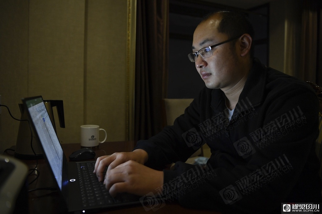 四川第四批援助湖北医疗队队员陈锋、苏明华、孙颖等医生下班后通过视频会议,汇总白天数据,总结经验、交流文献信息、修正调整方案。