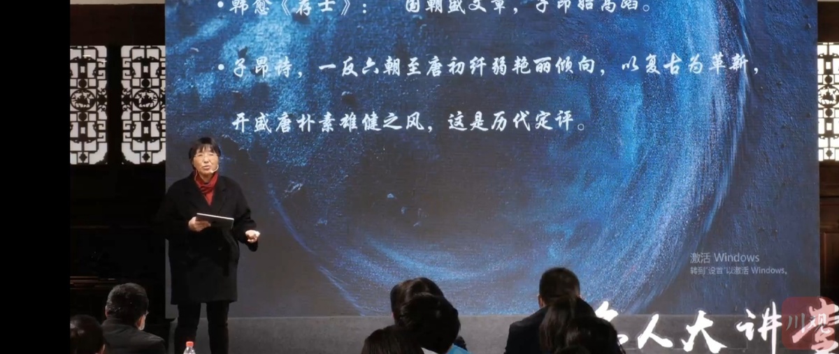 11月29日,名人大讲堂做客陈子昂故里——遂宁射洪。四川大学文学与新闻学院中文系教授王红,以“从金华山到幽州台——走近唐代诗人陈子昂”为题,讲述了这位蜀中才子跌宕起伏的一生。