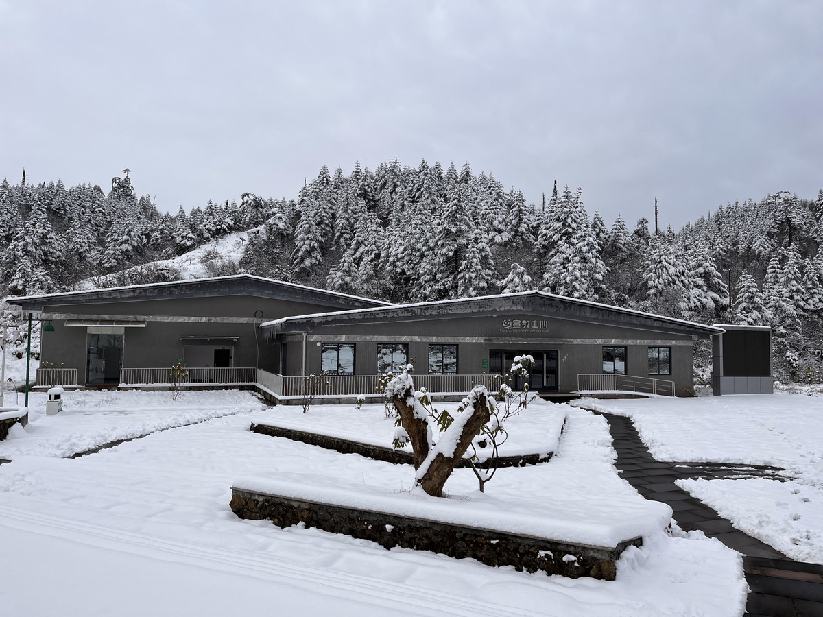11月29日,在区域海拔2400米的位置,放归基地已经有了积雪。大熊猫国家公园荥经县管护总站工作人员李平说,每年11月底到次年3月底都会有积雪,通常这个时间段为大雪封山期。