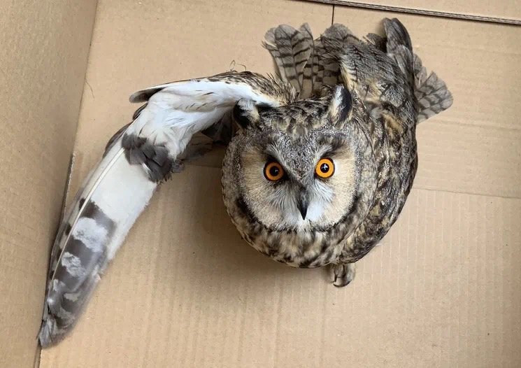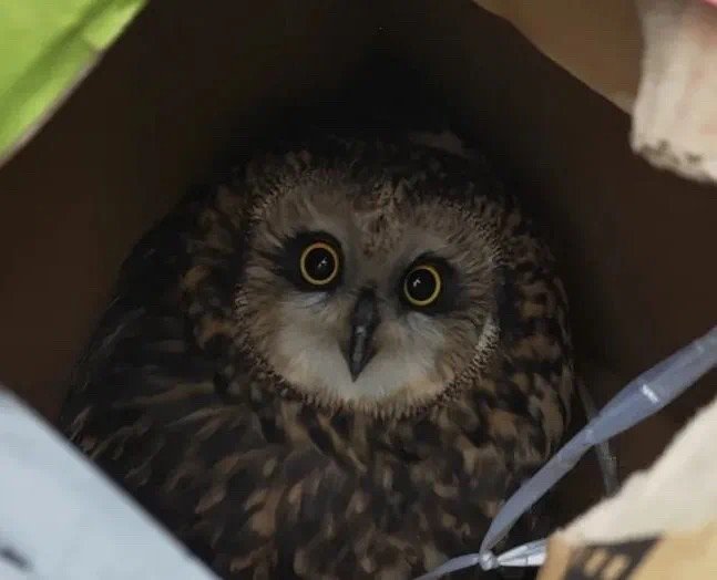 3月9日,敖平镇一村民发现一只类似猫头鹰的鸟类受伤,便立即报警,敖平派出所民警将该鸟带回派出所并联系林业部门实施救助,被救助的鸟类为长耳鸮,属于国家二级保护动物。