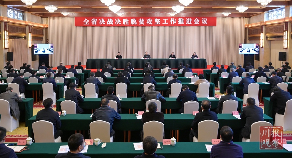 3月11日,全省决战决胜脱贫攻坚工作推进会议在成都召开,省委书记、省脱贫攻坚领导小组组长彭清华出席会议并讲话。他强调,如期打赢脱贫攻坚战、与全国同步全面建成小康社会,是我们向党中央立下的军令状、向全省人民作出的庄严承诺。全省上下要坚决落实习近平总书记在决战决胜脱贫攻坚座谈会上的重要讲话精神和党中央决策部署,统一思想认识、坚定必胜信心,以不破楼兰终不还的坚强意志,以越是艰险越向前的顽强作风,咬定目标、一鼓作气、克难奋进,坚决克服新冠肺炎疫情影响,坚决夺取我省脱贫攻坚收官之战全面胜利。