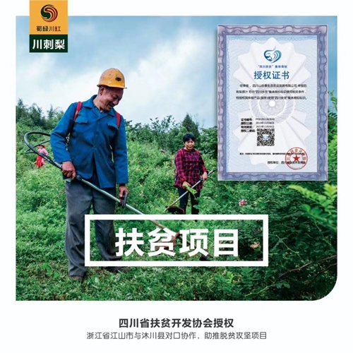据了解,产品已经获得了四川省扶贫开发协会授予的“四川扶贫”集体商标授权书。但受疫情影响,目前山田村约有6万盒2L装刺梨果汁滞销,如果你想购买富含维生素C的刺梨汁,可拨打13541300672。