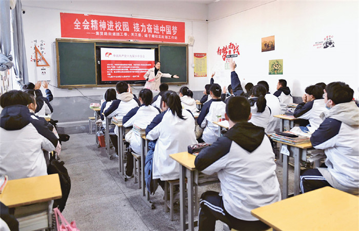 2021年11月24日,安徽省安庆市大观区集贤路街道团工委、碟子塘社区红领工作站联合开展党的十九届六中全会精神宣讲进校园活动。 中新社发 项顺平/摄