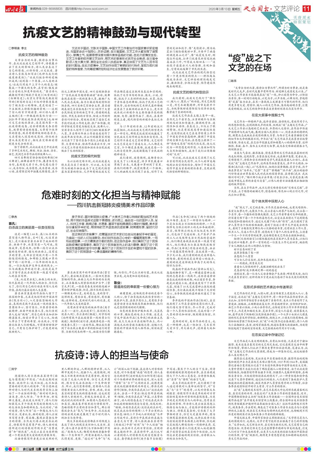 当然,在众多作品中,也不乏将灾难诗意化的"灾难文艺腔",浮于浅表、止于煽情的献媚之作,情感枯竭、难见初心的应付之作,对此应加以警惕。