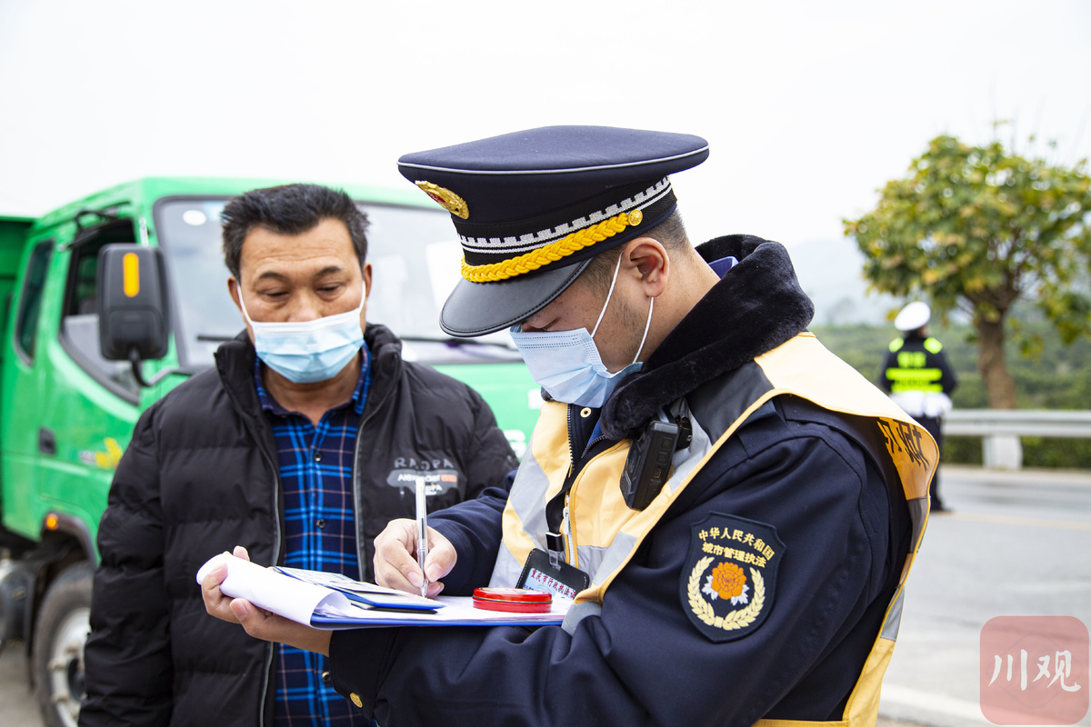 “经检查,这辆货车没有按照规定对车辆进行全封闭式处理,建议立案调查。”当天上午,在G348重庆市荣昌区安富街道普陀村设置的执法检查点,隆昌市综合执法局的执勤人员郭涛发现一辆运渣车未按照规定对车身进行全密闭化处理,当即要求驾驶员现场处理并开具行政处罚决定。