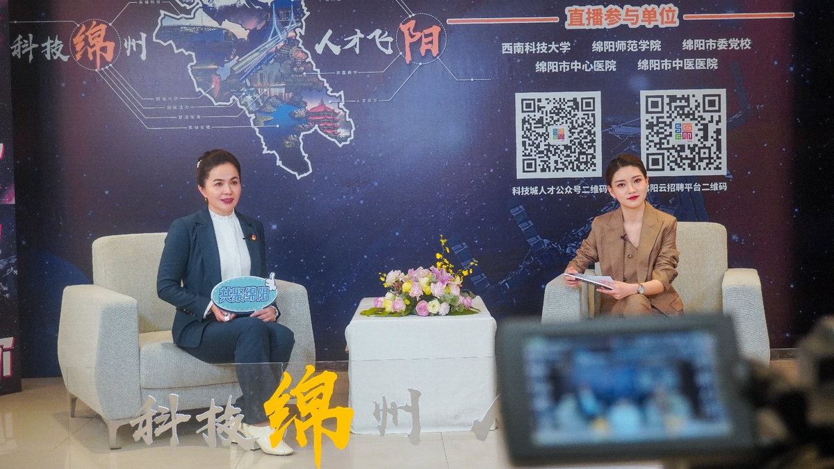 为将优秀高层次人才收入麾下,各单位也是纷纷献出“压箱底”福利:中国兵器装备集团自动化研究所有限公司引进应届博士最高年薪100万元;四川长虹电子控股集团有限公司校园招聘开出年薪50万元、安家费15万元;四川东材科技集团股份有限公司引进博士年薪不低于25万元,并有项目提成和股权激励……求贤之心,历历可见。直播现场不仅公布了众多高质量岗位,还奉送多轮互动抽奖环节,富有绵阳特色的奖品让整个直播氛围高涨。