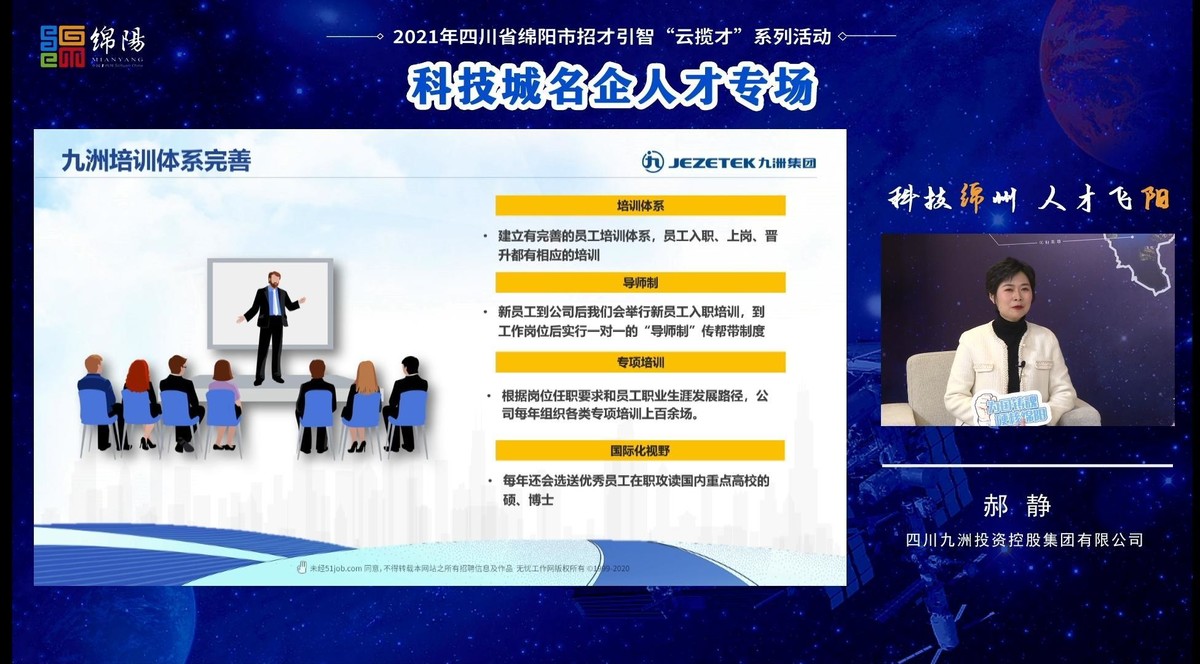 本次系列活动自11月26日启动以来,连续开展科技城国防科工人才专场、科技城名企人才专场、科技城高层次人才专场(硕博专场)3场专属线上“云揽才”活动,借助新媒体平台,全面推介绵阳市创新创业环境与人才政策,邀请重点用人单位人事专员解读招聘计划。