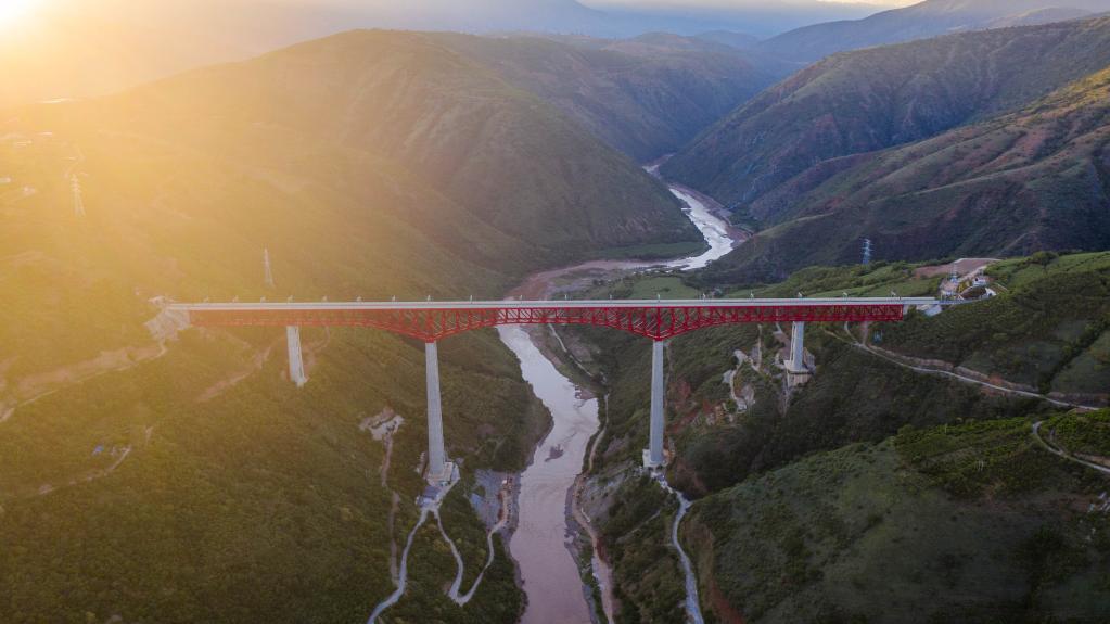 2021年9月27日拍摄的中老铁路元江双线特大桥。