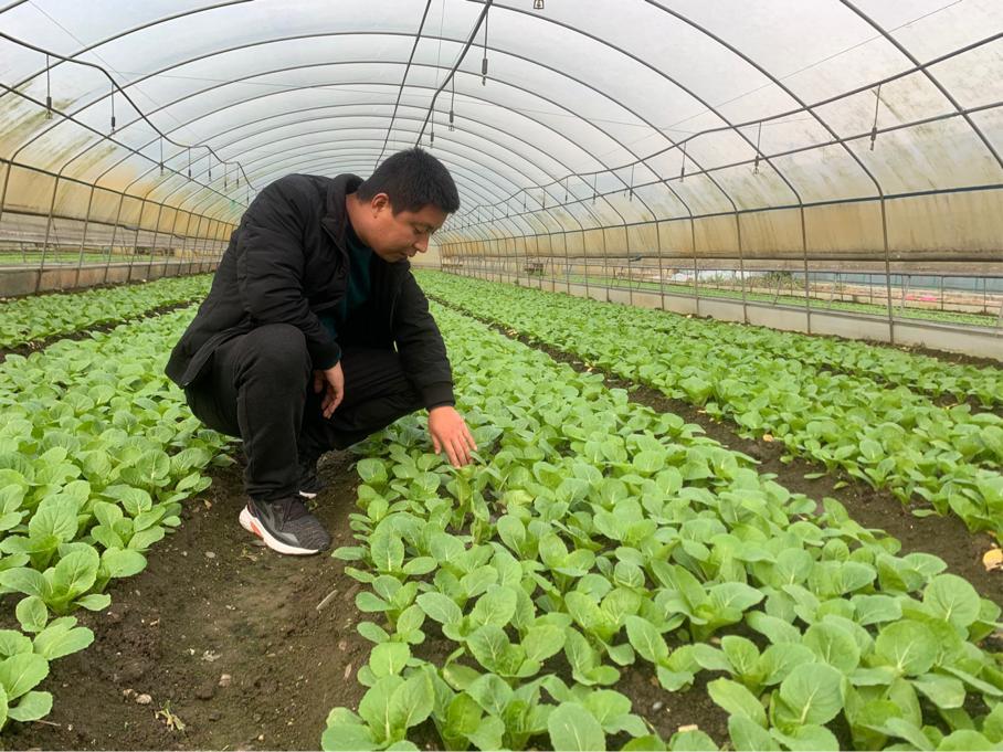 苗明军查看冬季蔬菜长势