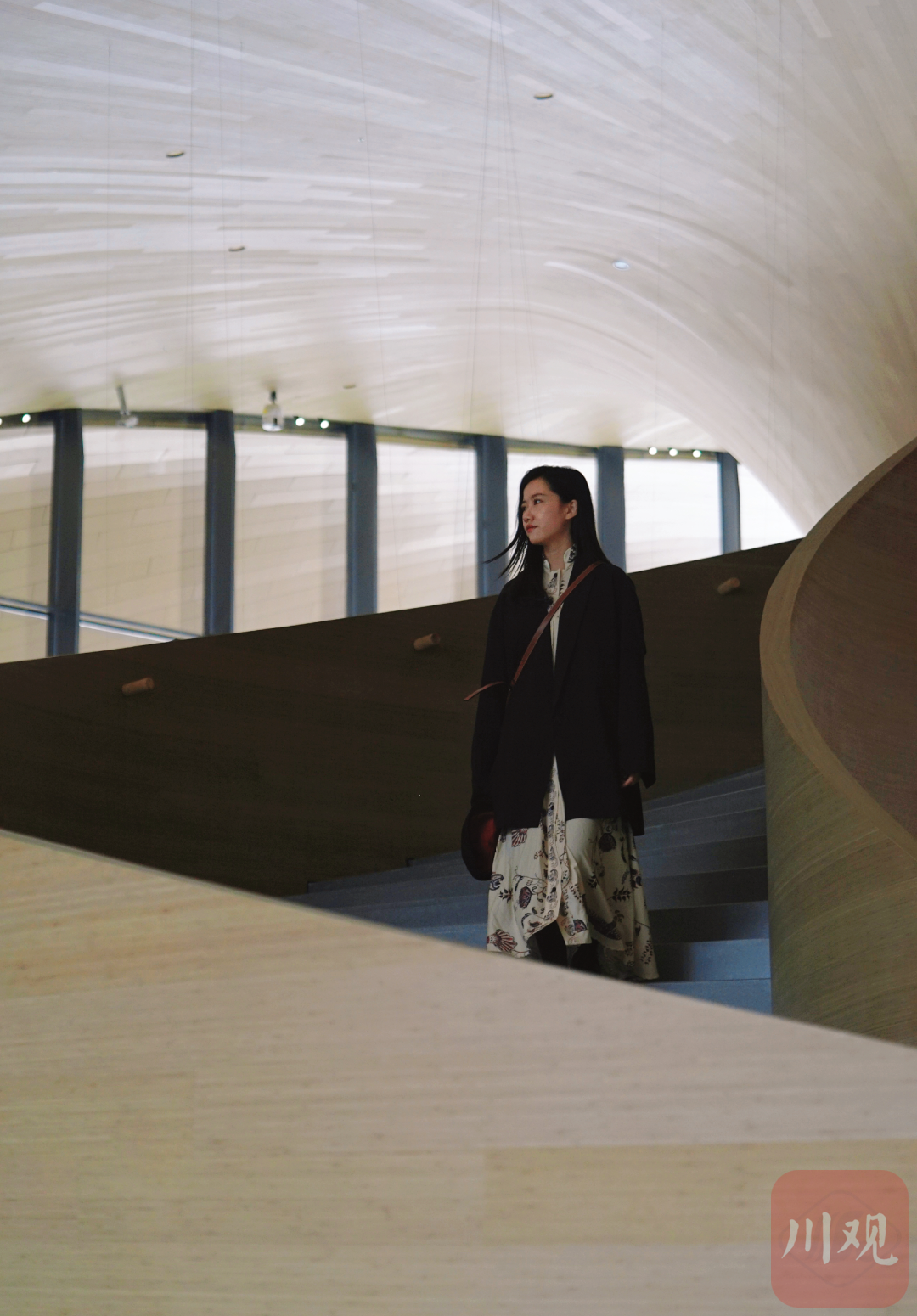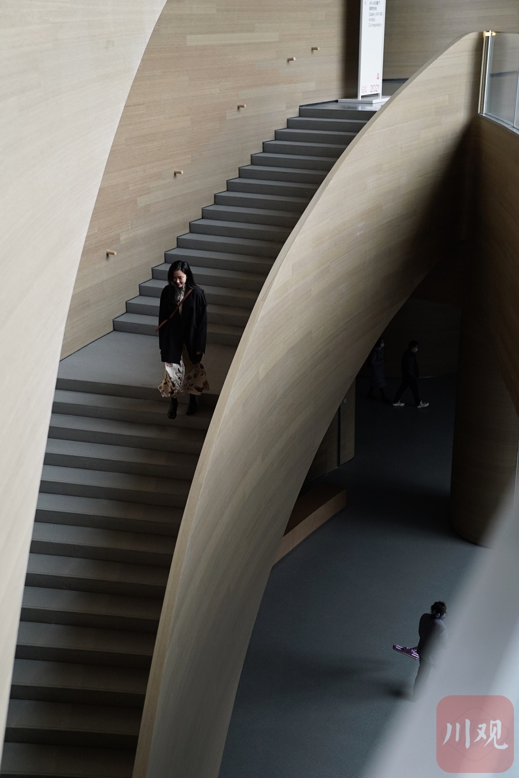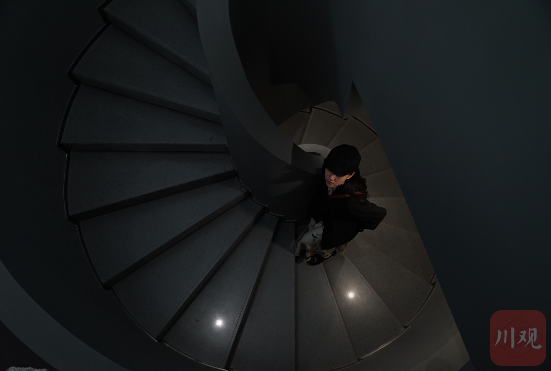 艺术馆A馆里,有一座连通整个楼层的旋转楼梯。