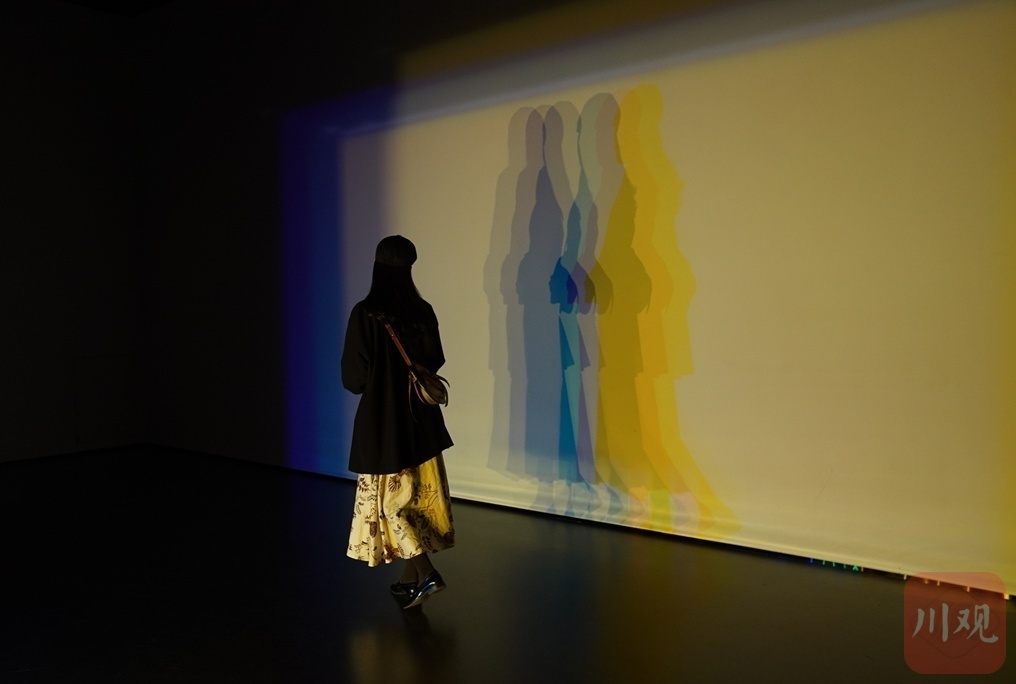在墙上投射出不同颜色的轮廓组合。