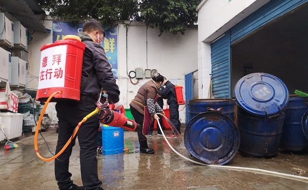一大早,记者走进广元市利州区郑州路利州市场,看见地板和角落都冲洗的干干净净。市场负责人任昭洪说,早上大家要开市做生意,发动提前进行大扫除。