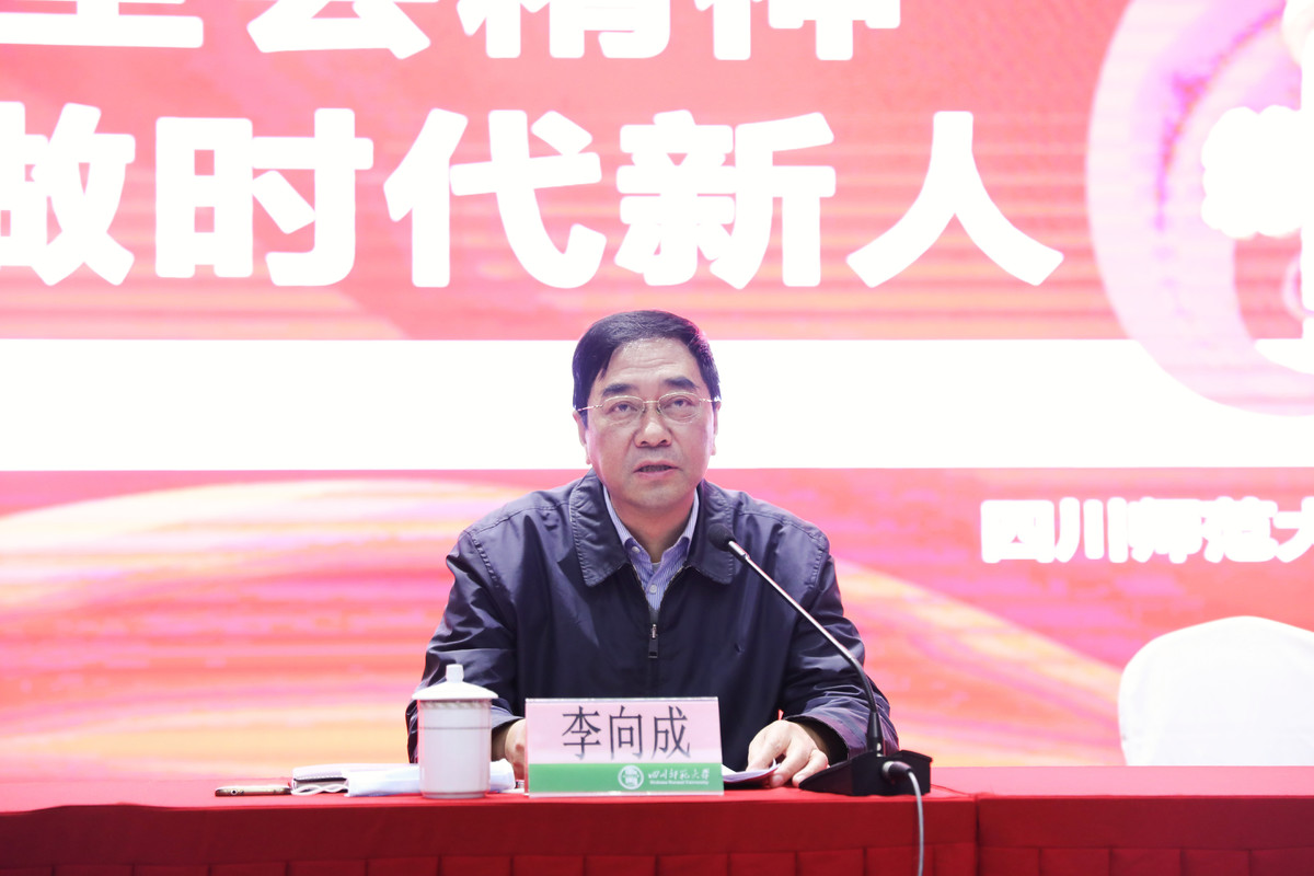 李向成说,历史长河奔流不息,时代考卷常答常新。只有勇于担当,方能不负时代、不负韶华。他希望全体师大学子在赓续百年红色传承中彰显青春担当,在学深悟透的基础上,把思想和行动统一到党中央的决策部署上来,争做“两个确立”的忠诚拥护者和“两个维护”的模范践行者,以坚定的信仰、扎实的学识筑牢百年党史丰碑,立足新时代、担当新使命、奋进新征程,积极投身到中华民族伟大复兴的事业上,让青春在党和人民最需要的地方绽放绚丽之花。