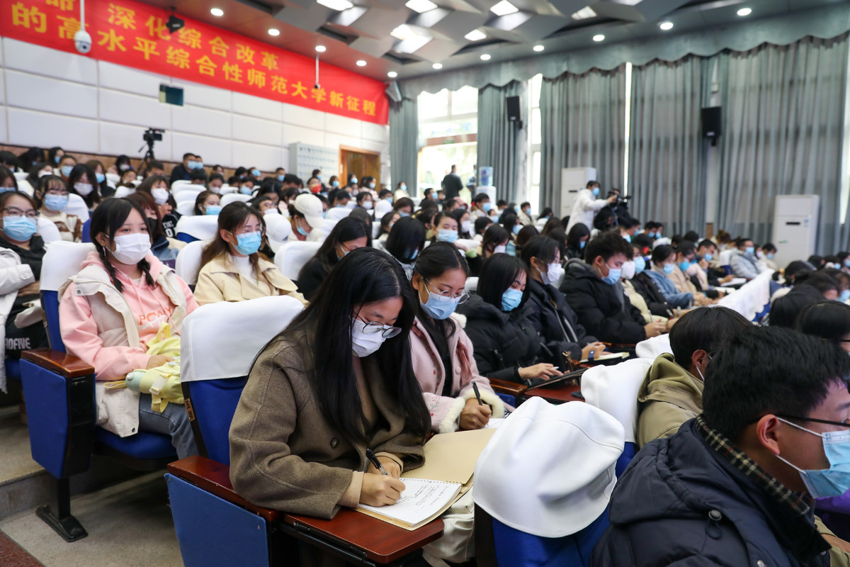 李向成讲述了吃苦耐劳、艰苦奋斗、甘于奉献的师大榜样的故事:把坚定理想信念传递给广大师生的老教授韩万斋,牢记使命、传承铁道兵精神的哲学教授蔡方鹿,坚守立德树人初心、像对待亲人一样关爱学生的文学院教授黄尚军,失去双腿仍乐观向上努力奋斗的经管学院学生黄欢。他就践行新时代青年学子的使命担当向同学们提出四点希望: