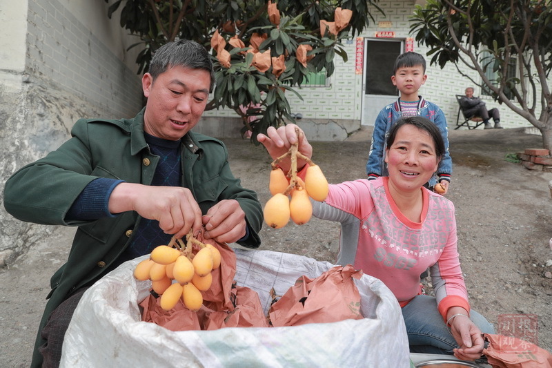 “这个品种产量高,上市时间也好。”在小关村枇杷林旁,村民郭大姐一边去除枇杷套袋,一边告诉记者,家里种了几十株枇杷树,今年可收枇杷1千多斤,预计可以增收1万多元。