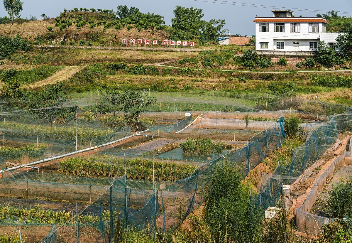 池塘对面的公路旁是当年骑龙场的入口。当地俗语“望不拢的响石山,碰到的骑龙场”,响石山即毗邻骑龙镇的响石镇,因地势较高,又有高大的石牌坊,赶场的人很远就能望见。而骑龙场在山背后,处于“C”状进出场道路的中心低洼位置,故不熟悉路的人到了眼前才发现里面原来有一个场镇。入口分叉为两条路,向上一条通向镇政府,对直一条通向老街。