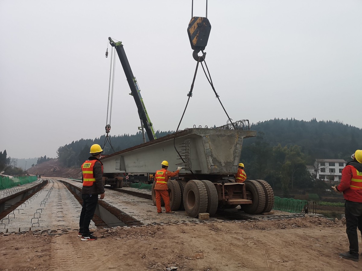 位于成资渝高速公路TJ6标的双河口大桥,正在架设桥梁。一片片已经预制好的梁板从梁场拉到建设现场,进行吊装。“原本用的是架梁机架设。”四川交投建设成资渝项目TJ6项目经理袁国彬介绍,因疫情耽误了工期,为了不影响后续工程,该标段拆除了架梁机,改用操作更灵活的吊车,通过投入设备、人力来加快进度,一天可以架设5-6片梁,预计在3月底前可完成所有桥梁架设。