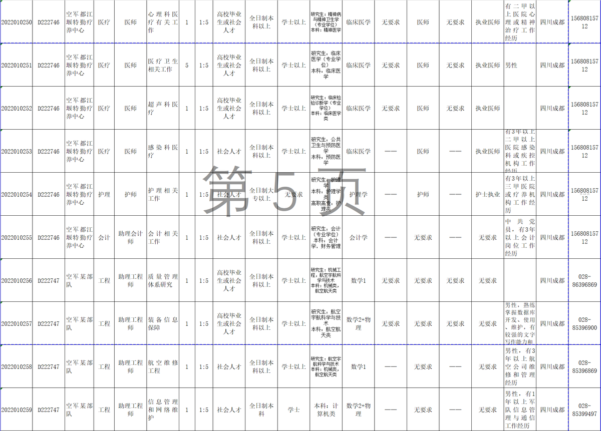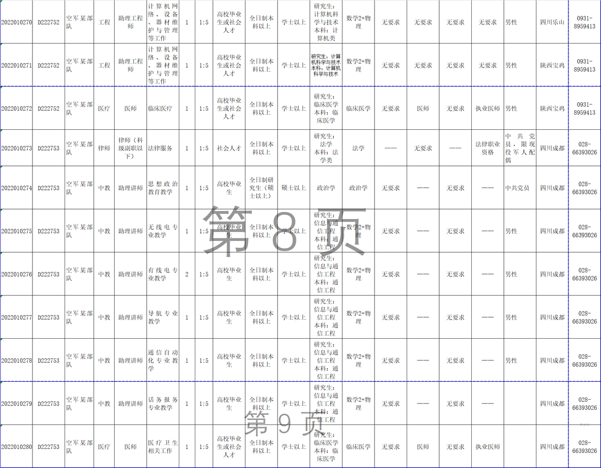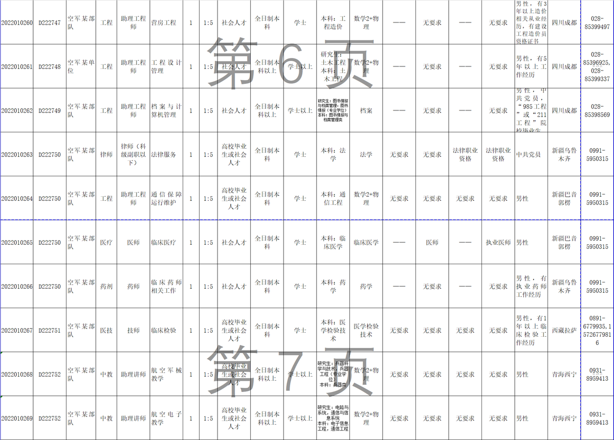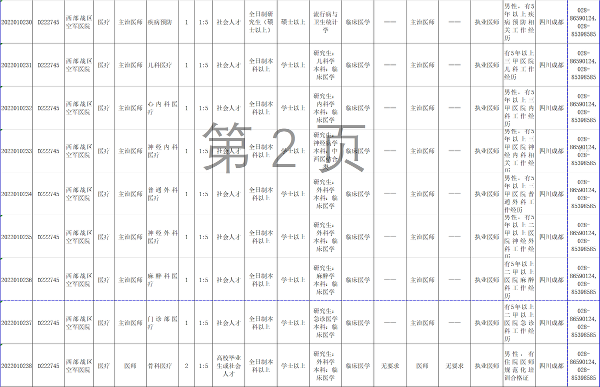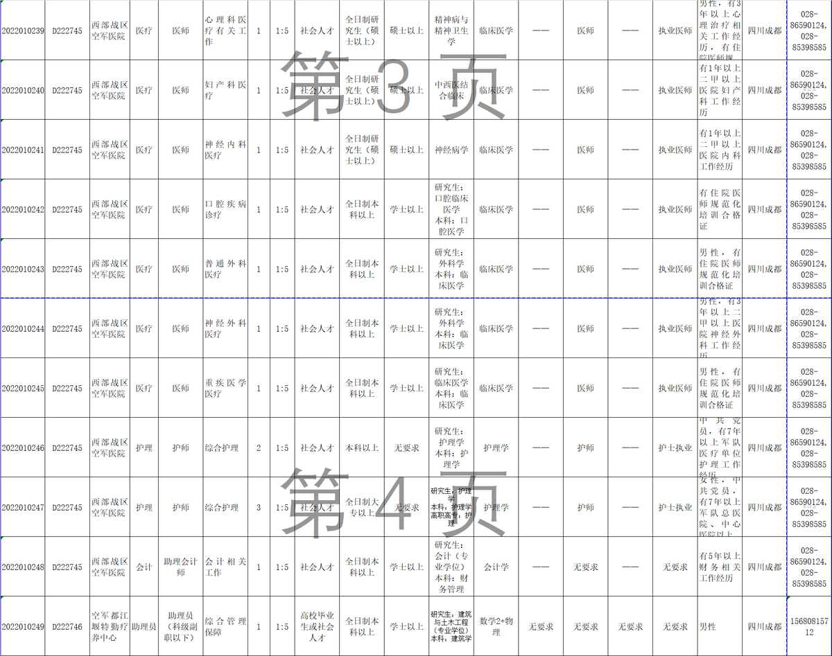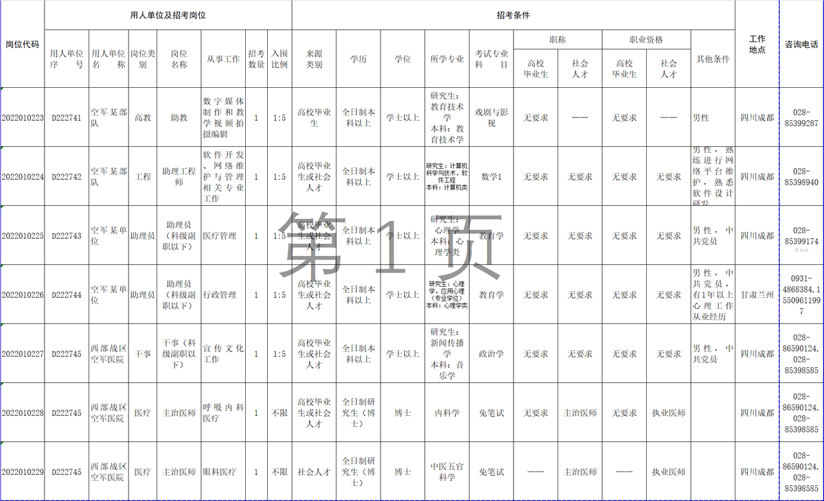 12月6日,记者从西部战区空军政治工作部获悉,2022年军队面向社会公开招考文职人员工作全面展开,西部战区空军计划招考67人,其中面向博士以上人员免笔试招考医疗专业2人,报名截止时间为12月9日18:00。