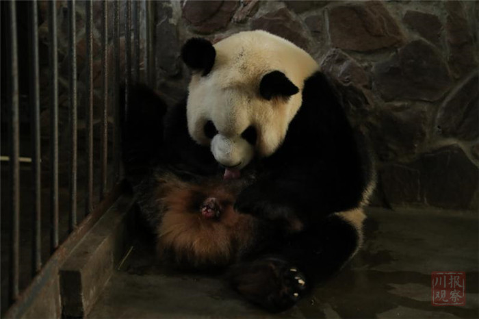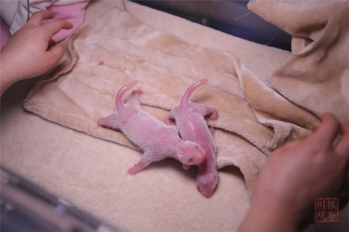 据饲养员介绍,大仔初生体重为159.8克,小仔初生体重119.5克。目前,母子各项指标正常,幼仔出生后可以顺利吃到母亲的奶水,叫声洪亮,身体非常健康。