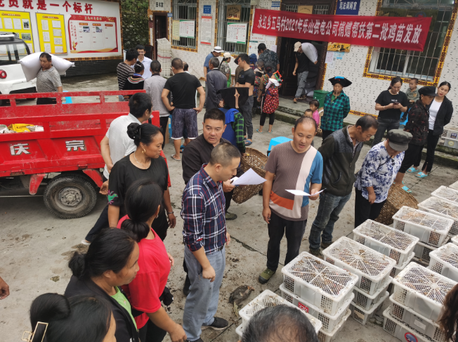 五马村海拔高差大,有丰富的林地资源,王华首先想到发展林下养殖业。他向国网乐山供电公司争取到4400只鸡苗、6.8吨鸡饲料,准备发放给88户脱贫户和监测户。鸡苗分为两批,第二批鸡苗发放前,对第一批鸡苗养殖情况进行摸排,“每户先发了20只,一个月后,养得好的前15名增发45只,倒数15名每户增发15只,中间的每户增发30只,存活率和是否散养是主要考核依据。”王华说,引入考评机制后,村民养殖积极性大大增强,第一批鸡苗整体存活率达98%以上。