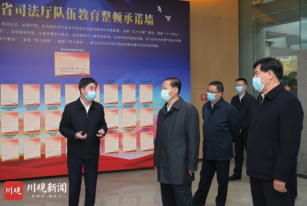 他来到省法院刑事审判第一庭第二审判团队办公室,听取了天府中央法务区审判集聚区建设情况介绍,详细询问了解省法院机关及全省法院系统在教育整顿中提升审判工作质效,以及发挥审判职能作用协同做好扫黑除恶、打击治理电信网络诈骗等重点工作情况,要求聚焦重点领域和关键环节抓好教育整顿中央督导反馈意见整改落实,进一步补短板、堵漏洞、强弱项,结合开展“我为群众办实事”实践活动,采取针对性措施解决好群众反映强烈的热点难点问题,让人民群众在每一个司法案件中感受到公平正义。
