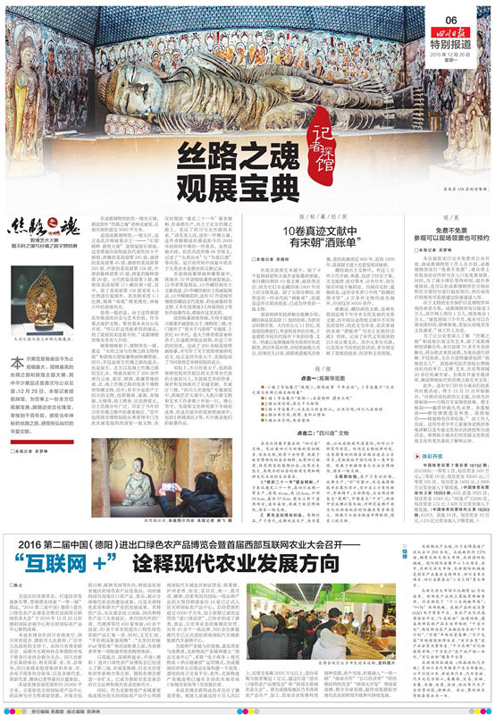 今日,四川日报推出两版特别报道,文物为证、记者探馆,带大家了解敦煌文化,提前感受丝路盛宴、四川骄傲。