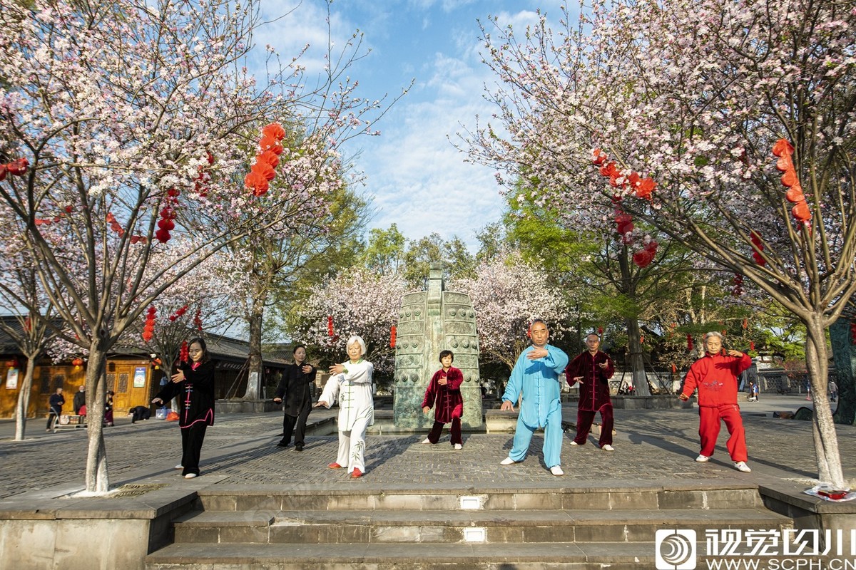 2020年3月18日,阆中古城,市民在贡院广场锻炼身体。