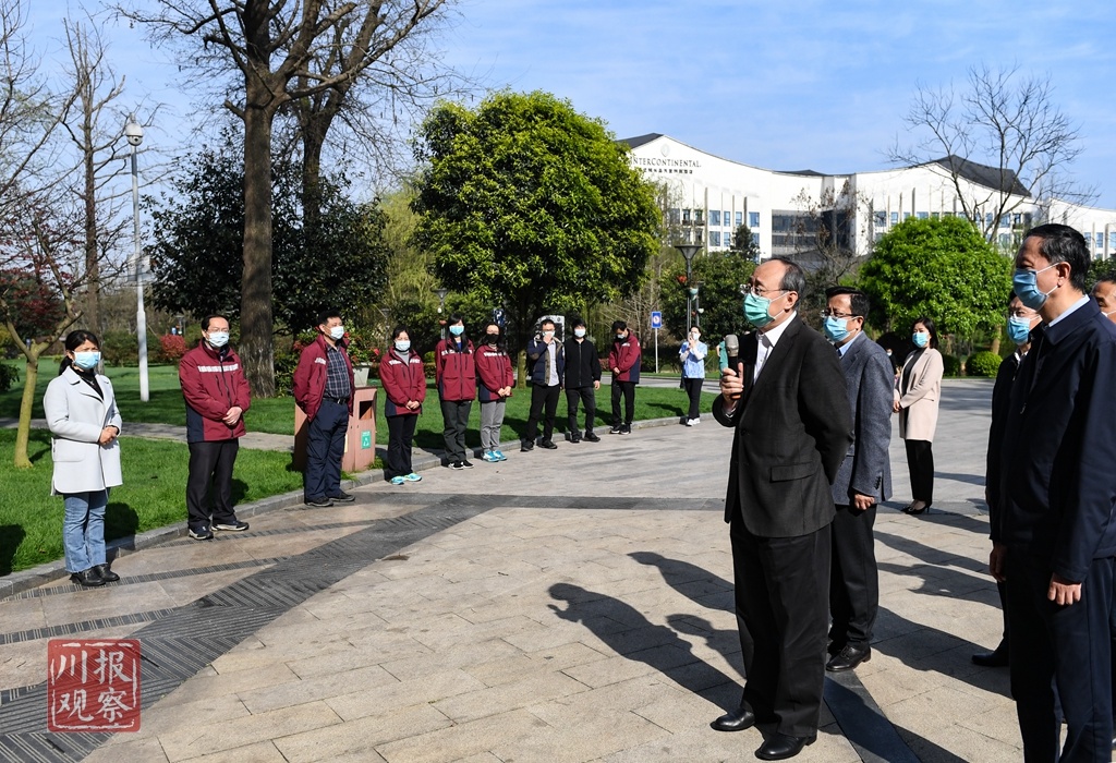 3月19日,省委副书记、省长尹力前往眉山市集中疗养休整驻地看望援湖北返川医疗队,代表省委省政府和全省人民欢迎英雄平安凯旋,向他们表示崇高敬意和衷心感谢。