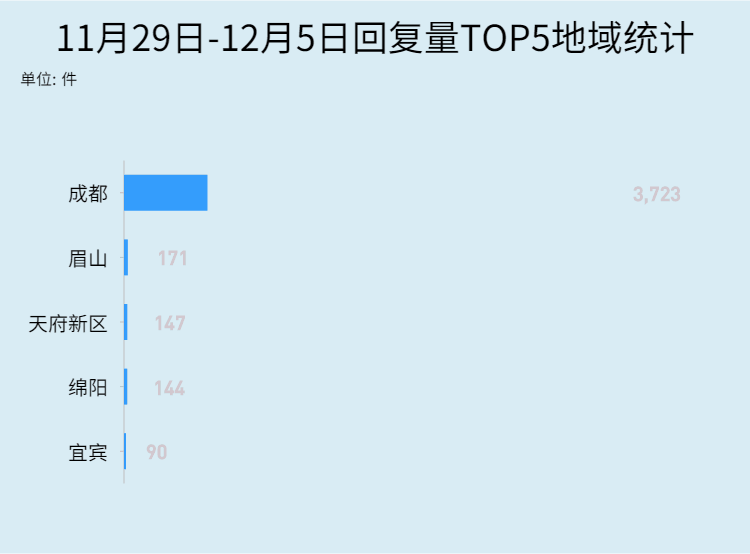 上一周,川报全媒体问政四川平台上,我省哪些区域回复群众留言最积极,哪些区域的回复频率还有待提升呢?我们一起来看看吧。