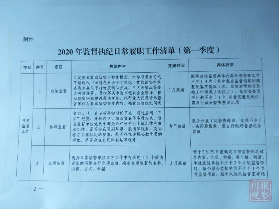 为进一步压实责任,增进监督实效,射洪市纪委监委对分片监督效果实行定量定性考核。每季度印发监督履责清单,明确季度监督内容和监督重点,由射洪市纪委监委组织部和干部监督管理室对监督效果及时跟进抽查。