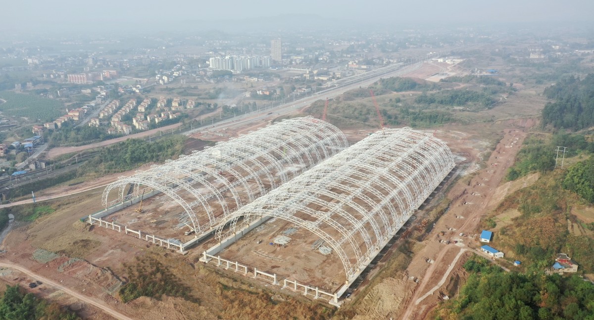 “项目总用钢量达3900吨,钢结构杆件超2万根。”中国五冶相关负责人介绍,项目于11月底完成2号储煤棚最后一榀钢桁架的合龙,12月初,1号储煤棚也顺利封顶。