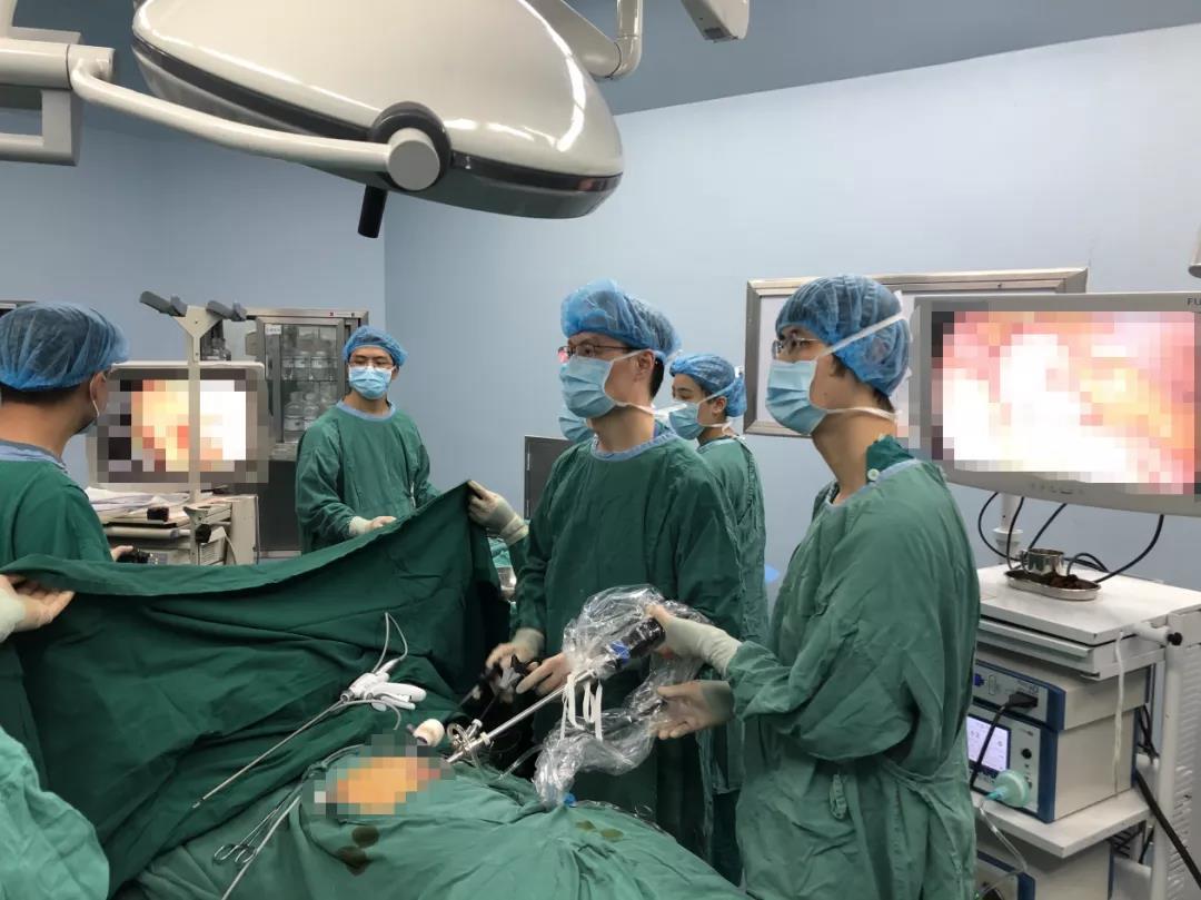 在周密术前准备下,11月4日,术中先由消化内科李旭医生肠镜精确定位,由普外一科沈健副主任主刀,黄秋实、杨鹏主治医师为助手为患者成功实施腹腔镜结肠癌根治术,耗时约120分钟,出血量控制在50ml内,手术顺利。术后病检提示结肠癌I期。