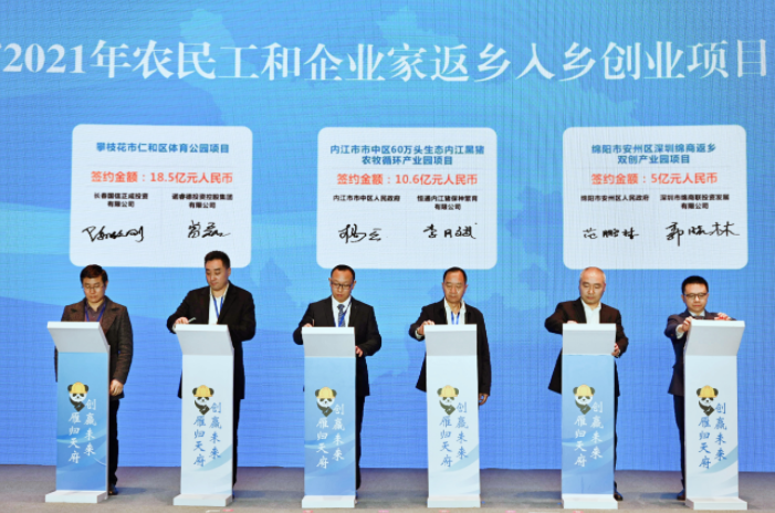 当天,包括仪陇县新锐体育用品公司在内,共有14个返乡创业投资项目集中签约,签约金额达50.75亿元。这些投资项目涉及到自贡、攀枝花、德阳、绵阳、广元、内江、乐山、南充、巴中、宜宾、广安、眉山12个市,包括生态农业、加工制造、科技研发、文化传播等多个领域。