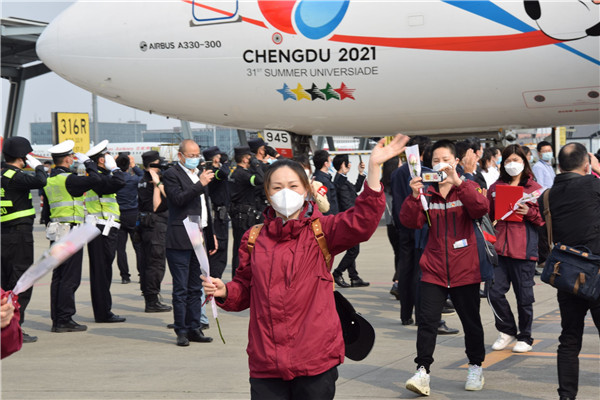 3月21日下午3点38分,随着载有四川援助湖北医疗队员的川航客机到达成都双流机场,四川援助湖北医疗队第一批、第九批医疗队队员共313名医护人员返回四川。从1月25日出征武汉算起,他们持续奋战在抗击疫情的一线。其中,时间最长的队员已经在一线战斗了55天。