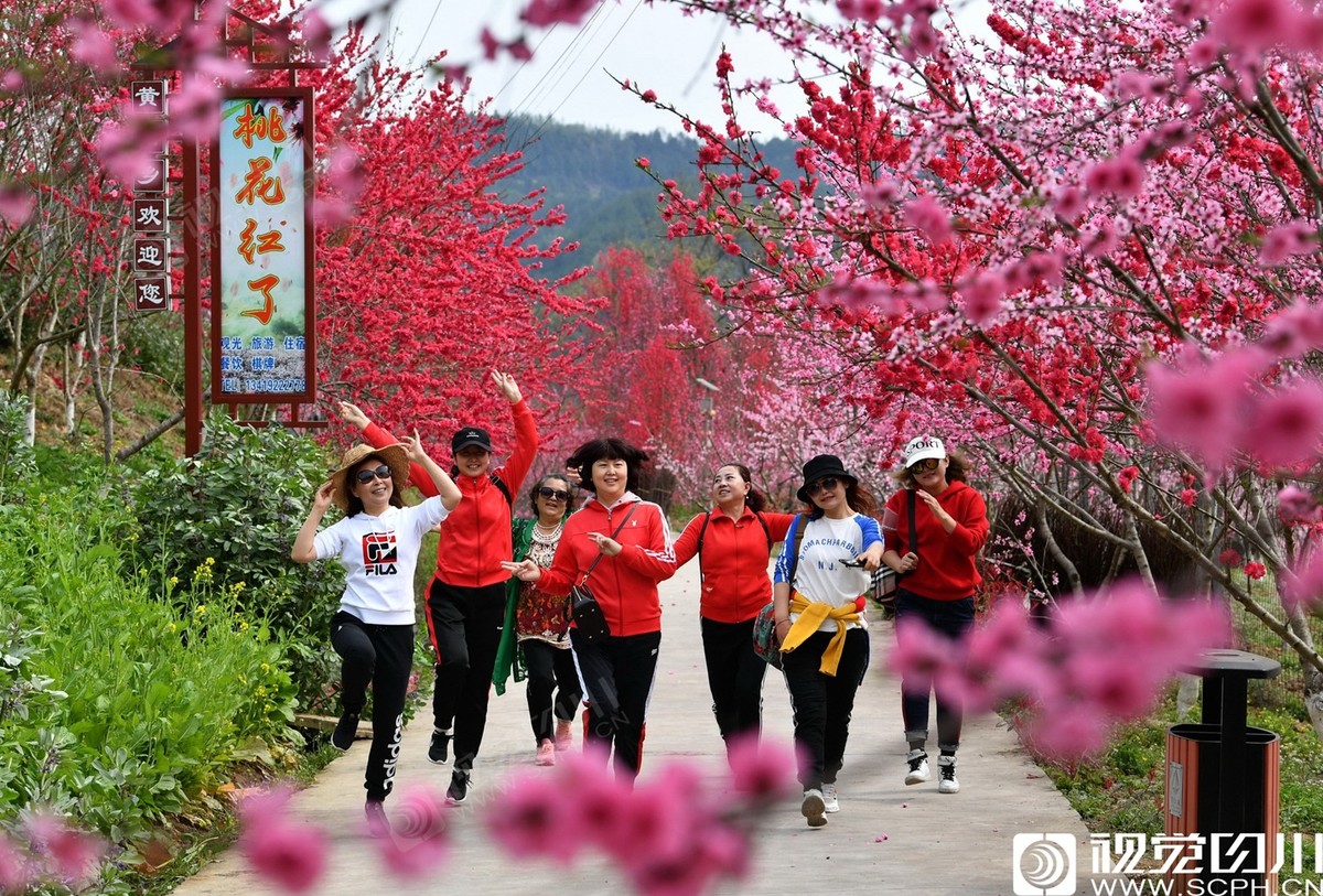 连日来,广元市苍溪县黄猫乡的万亩桃花迎来了盛花期,从山脚到山顶漫山遍野的桃花开满枝头,一簇簇一串串深红浅粉的花朵在春月的阳光里生机勃勃,美不胜收。游客们纷至沓来或漫步花海或拍照留影,享受美好春光。