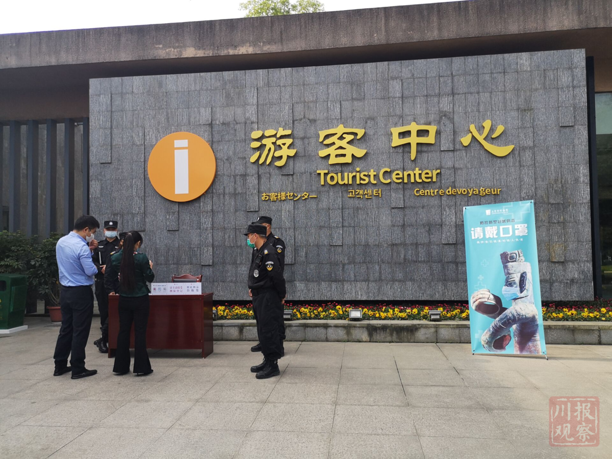 一大早,来自辽宁沈阳的游客孙丽萍一家就从成都赶到三星堆博物馆,出示身份证件扫码登记、消毒、经过人体红外测温门测温后,进入游客中心排队购票入场。而在游客中心外,还专门搭起了一顶蓝色帐篷,作为体温异常游客的“临时隔离点”。