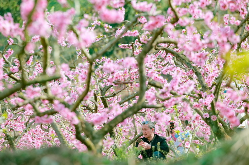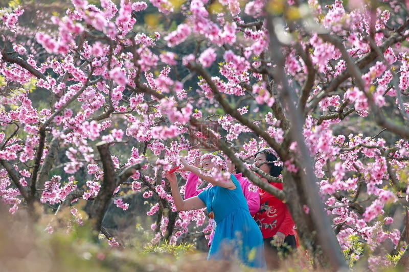 每到阳春三月,娇艳桃的花总会吸引各地游客前来观赏,带来“花花经济”,成为增收致富的又一渠道。