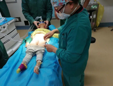 3月18日,炉霍县人民医院外科收治一名3岁3月男孩,体重12公斤,诊断右侧腹股沟疝,需要在气管插管全身麻醉下行右侧高位疝囊结扎修补术,在此之前,炉霍县人民医院还从未开展过小年龄组儿童外科麻醉及手术,以前这样的患儿只能到数百公里外的康定州人民医院甚至成都进行手术。成都市二医院援藏医疗队泌尿外科主治医师朱志全和麻醉主治医师孙燕进行病情评估患儿无手术及麻醉禁忌症,可以克服困难在县医院实施手术。