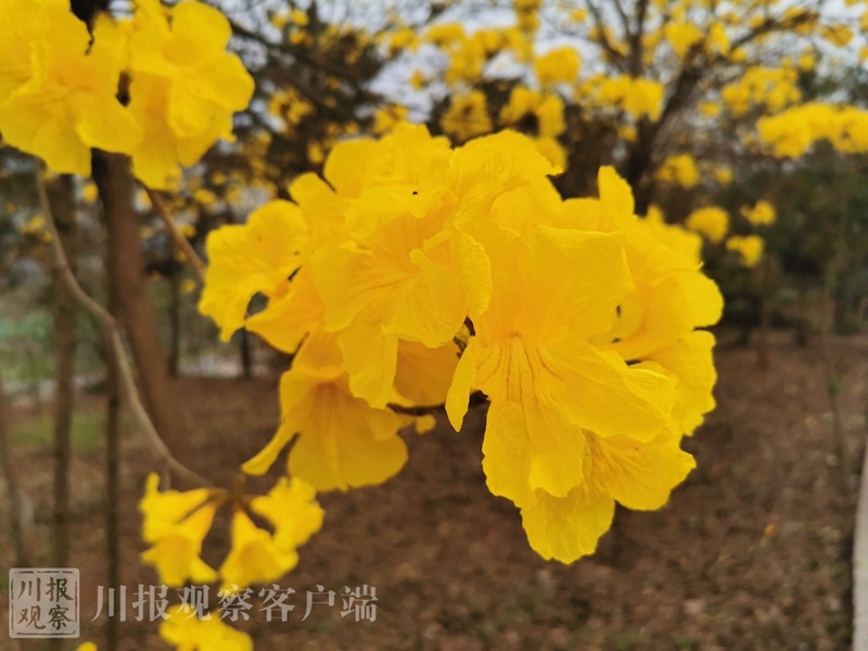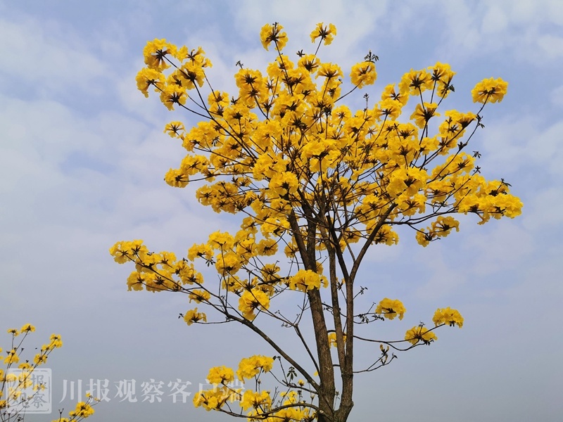 呈漏斗形的黄花风铃木状似风铃,三五朵花簇拥成花球,迎风摇曳,婀娜多姿。成片的黄花风铃木迎着阳光怒放,格外引人注目。跟紧春天的步伐,来一场与黄花风铃木的美丽邂逅吧!