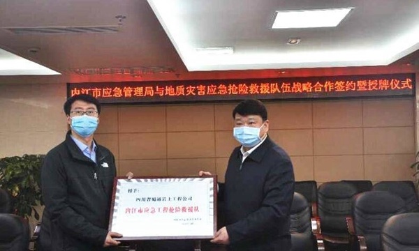 3月24日至26日,内江市应急局与四川蜀通岩土工程公司、四川省冶金地质勘查局水文队、四川省地矿局113地质队、四川省地矿局202地质队等4家地勘单位签订地质灾害应急抢险救援战略合作协议,这标志着内江应急抢险救援工作从传统群众会战救援模式向专业救援、科学救援模式转变。
