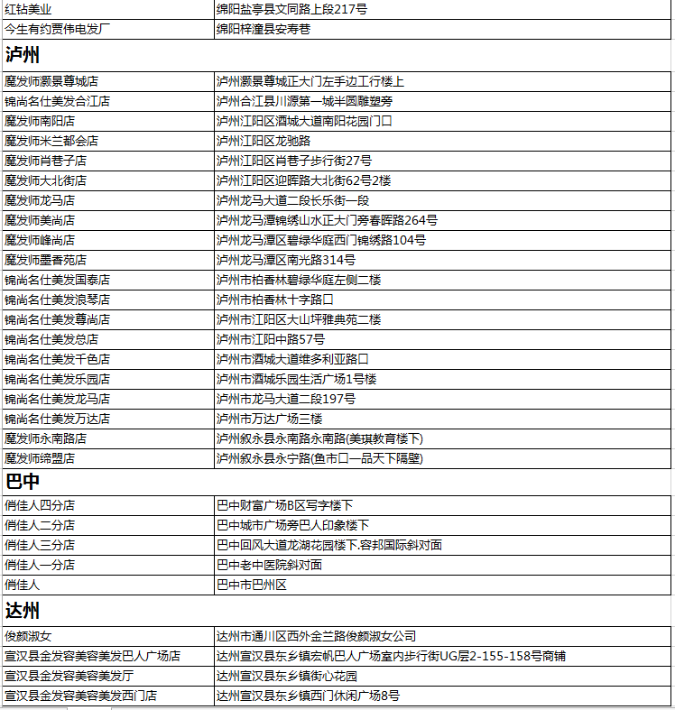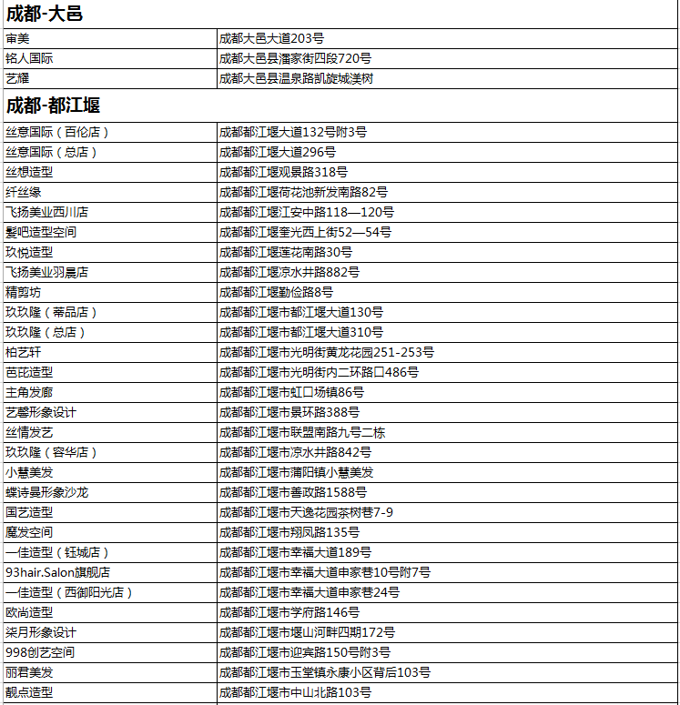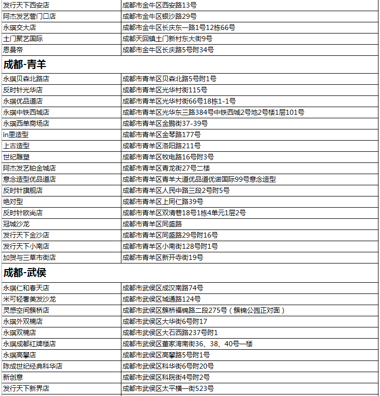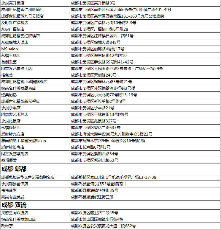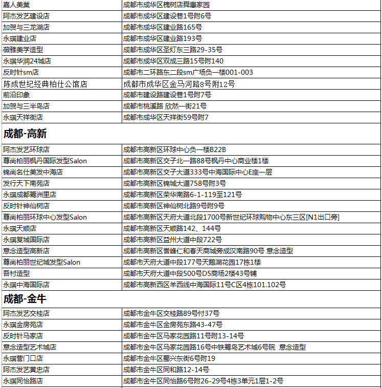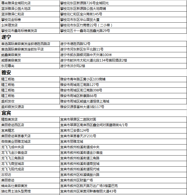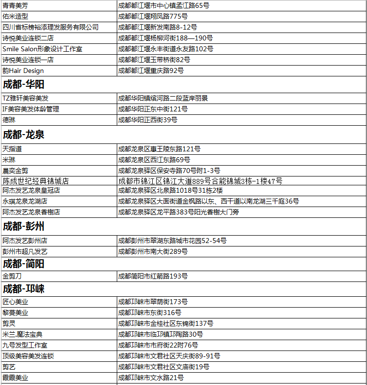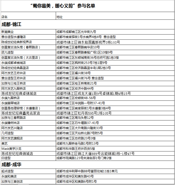 免费理发正在征集参与门店的过程中,3月底征集完,4月初开始执行。已征集的参与门店有: