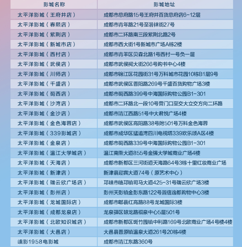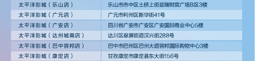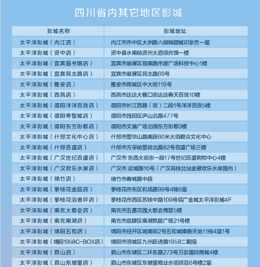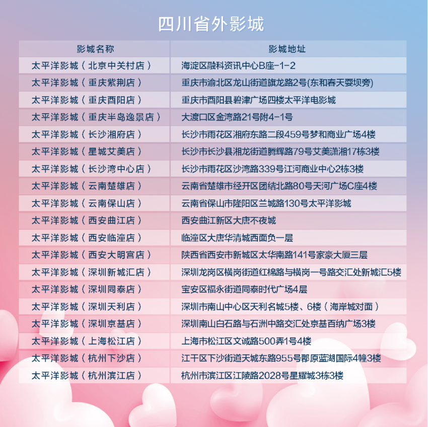 为四川援助湖北医护人员每人赠送一张“太平洋天使卡”,旗下71家太平洋影城不限时间、不限场次、不限地域,可任意观看100部电影。各影城将设置“敬医通道”,全国在职医护人员可凭工作证免排队,并享优先选座权。详情点击>>>