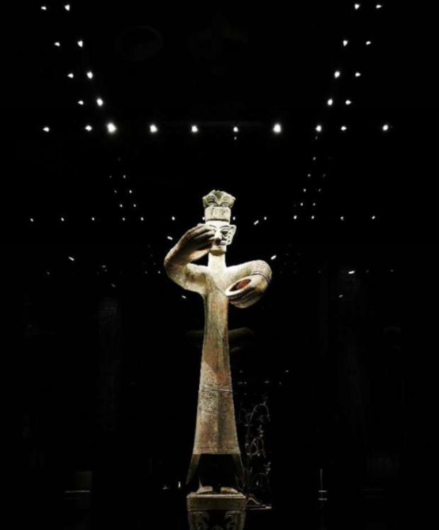 (三星堆博物馆展览的青铜大立人 三星堆博物馆供图)